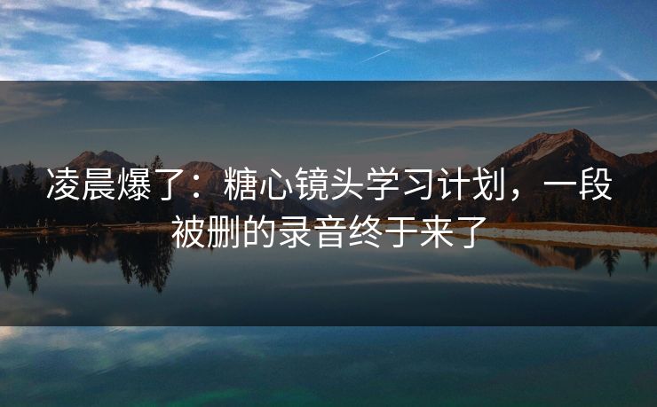 凌晨爆了:糖心镜头学习计划,一段被删的录音终于来了