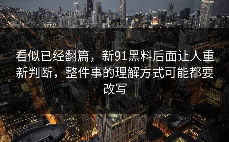 看似已经翻篇,新91黑料前面走向变了,整件事的理解方式可能都要改写