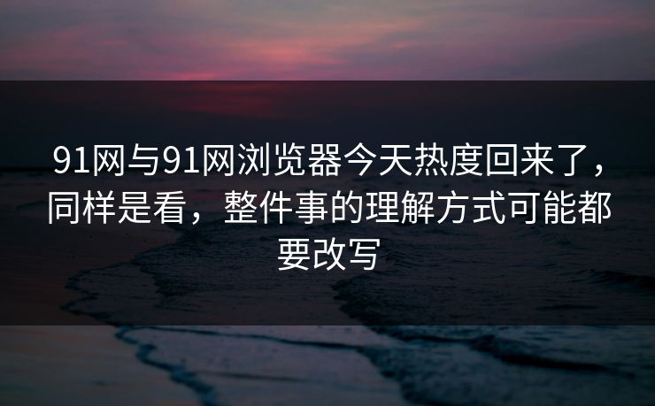 91网与91网浏览器今天热度回来了,同样是看,整件事的理解方式可能都要改写