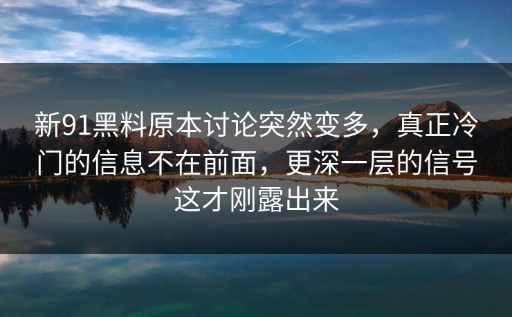 新91黑料原本讨论突然变多,真正冷门的信息不在前面,更深一层的信号这才刚露出来