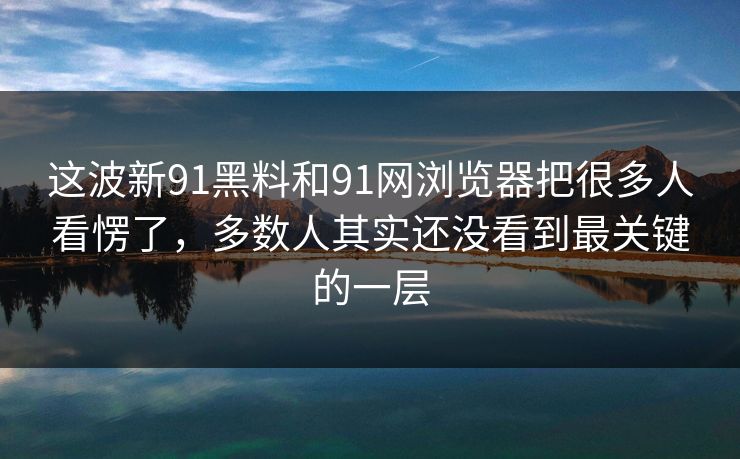这波新91黑料和91网浏览器把很多人看愣了,多数人其实还没看到最关键的一层
