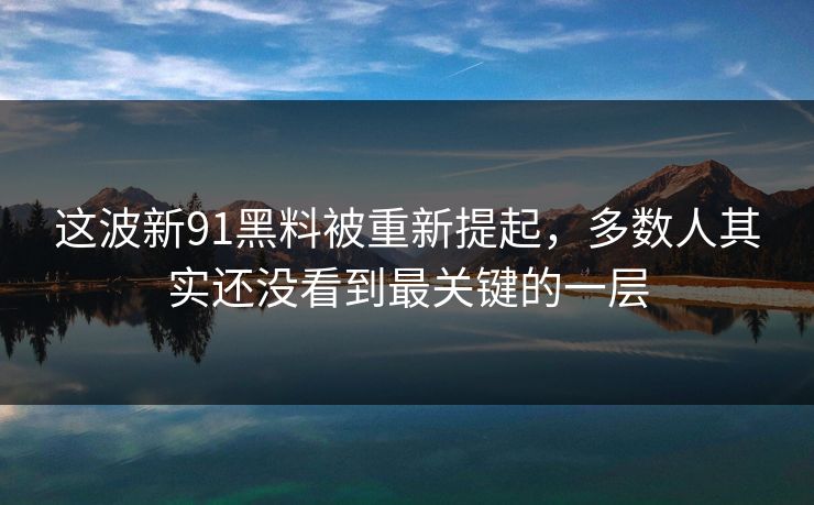 这波新91黑料被重新提起,多数人其实还没看到最关键的一层
