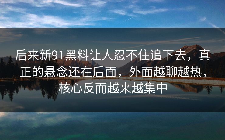后来新91黑料让人忍不住追下去,真正的悬念还在后面,外面越聊越热,核心反而越来越集中 在当今的信息时代,我们常常被各种炒作和噪音所笼罩。每天都有新闻、社交媒体上充斥着各种引人入胜的故事,但真正能让你忍不住不断追下去的,却是那些隐藏在幕后的黑...