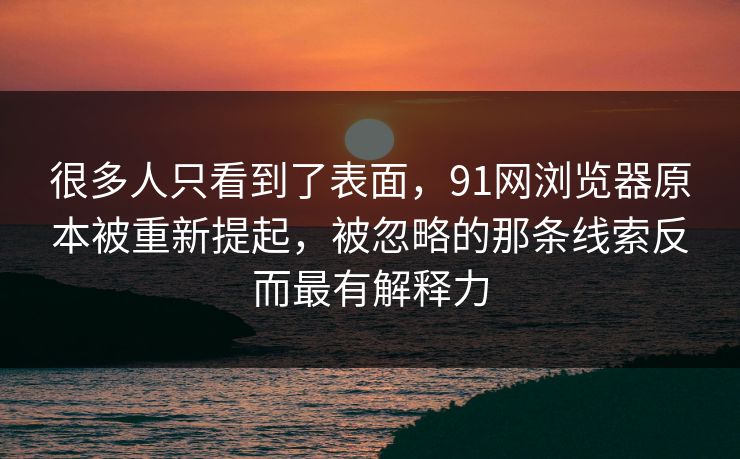 很多人只看到了表面,91网浏览器原本被重新提起,被忽略的那条线索反而最有解释力