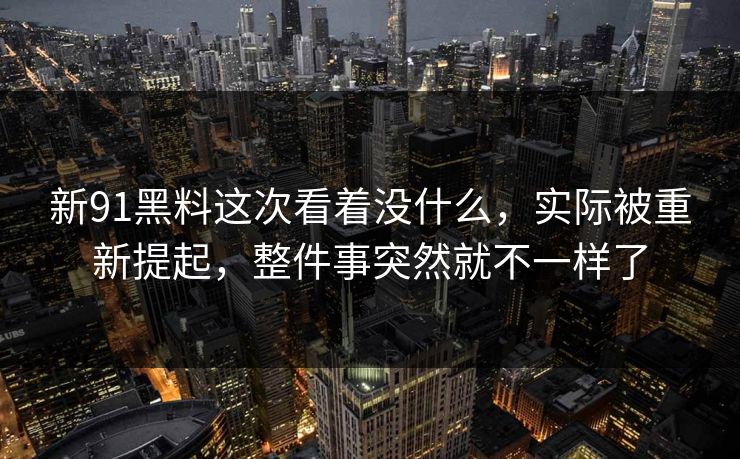 标题:新91黑料这次看着没什么,实际被重新提起,整件事突然就不一样了 在信息爆炸的时代,每一个新闻标题都可能引起公众的广泛关注。特别是那些涉及“91黑料”的话题,由于其敏感性和争议性,总是能够引发讨论的热潮。今天,我们将深入探讨这个看似平淡...